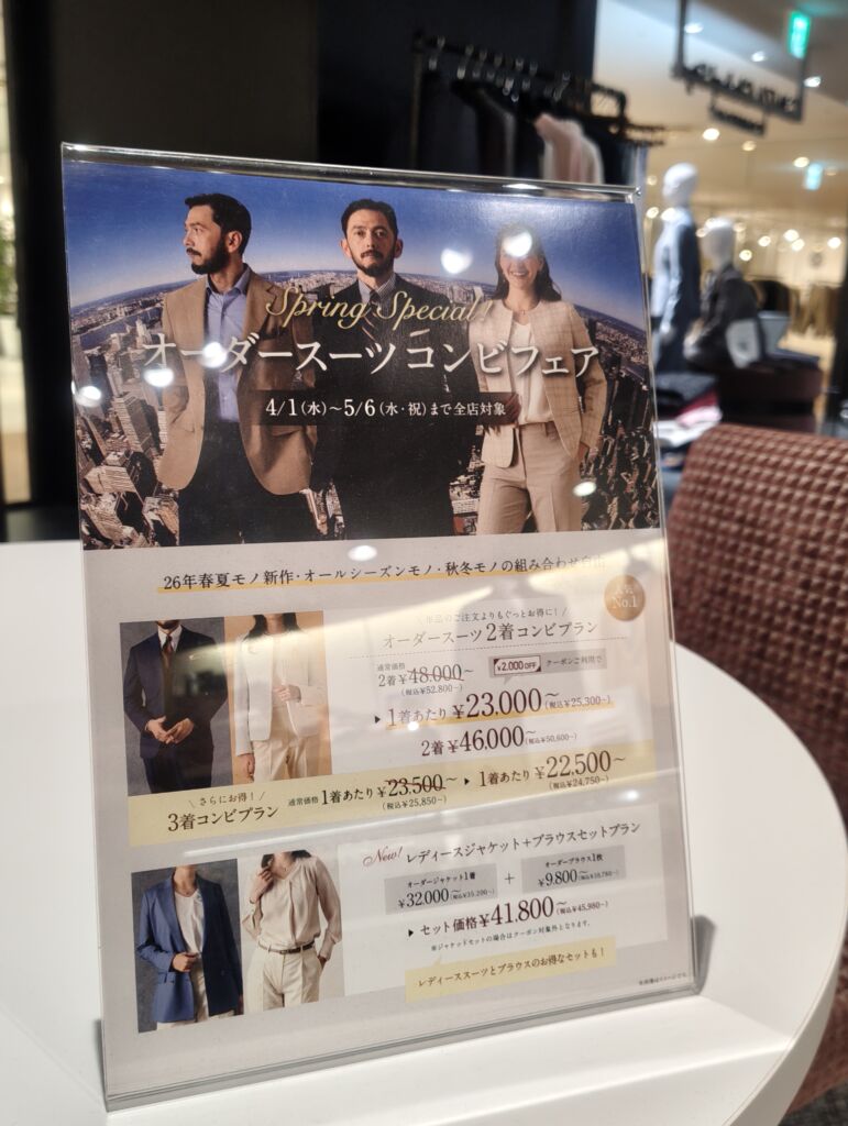 こちらはコンビ価格4万円台からご用意しておりコスパもかなり良く、今期最もおすすめの生地となっております!