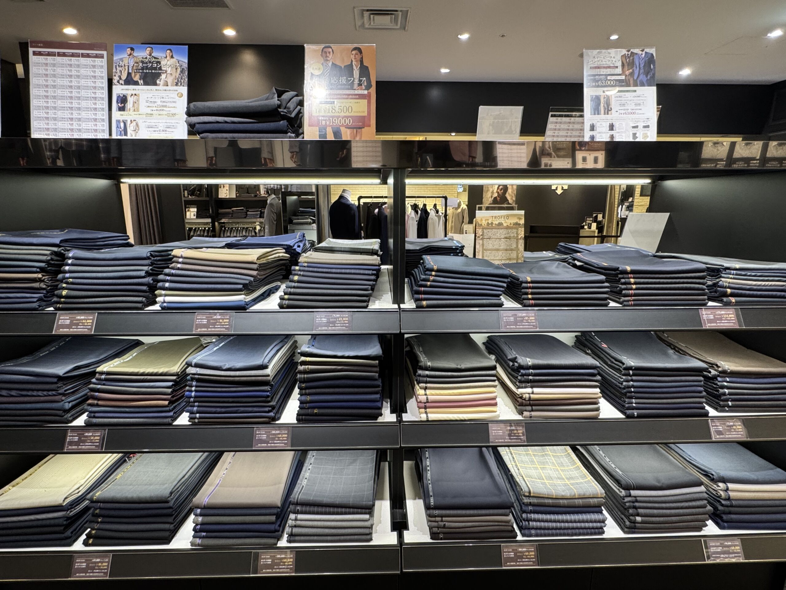 当店ではベーシックなネイビーやグレーに加え、ブラウン等のお色味も備えております。